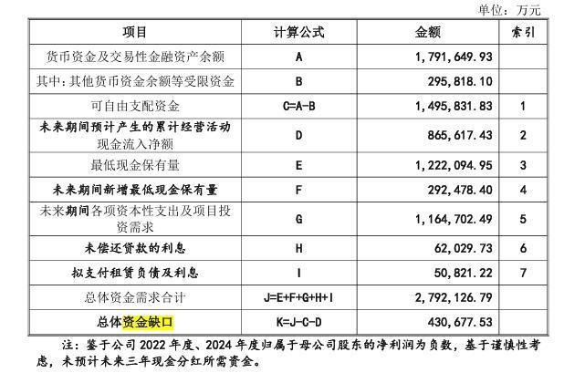 定增缩水15亿,未来三年资金缺口超43亿