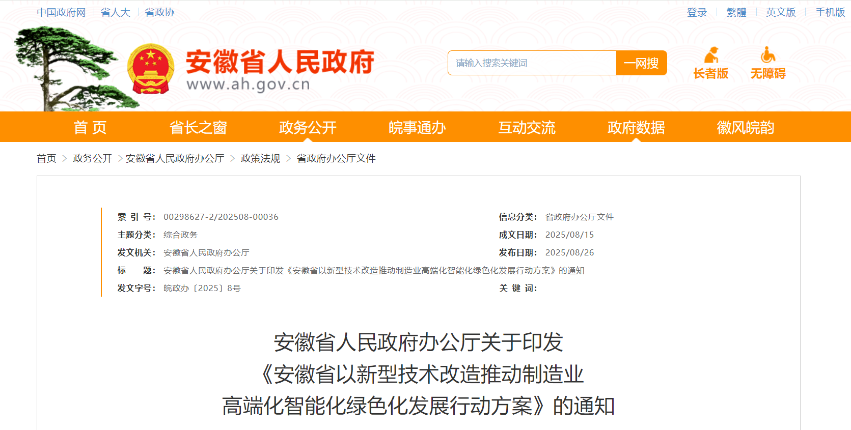 来源:安徽省政府网站