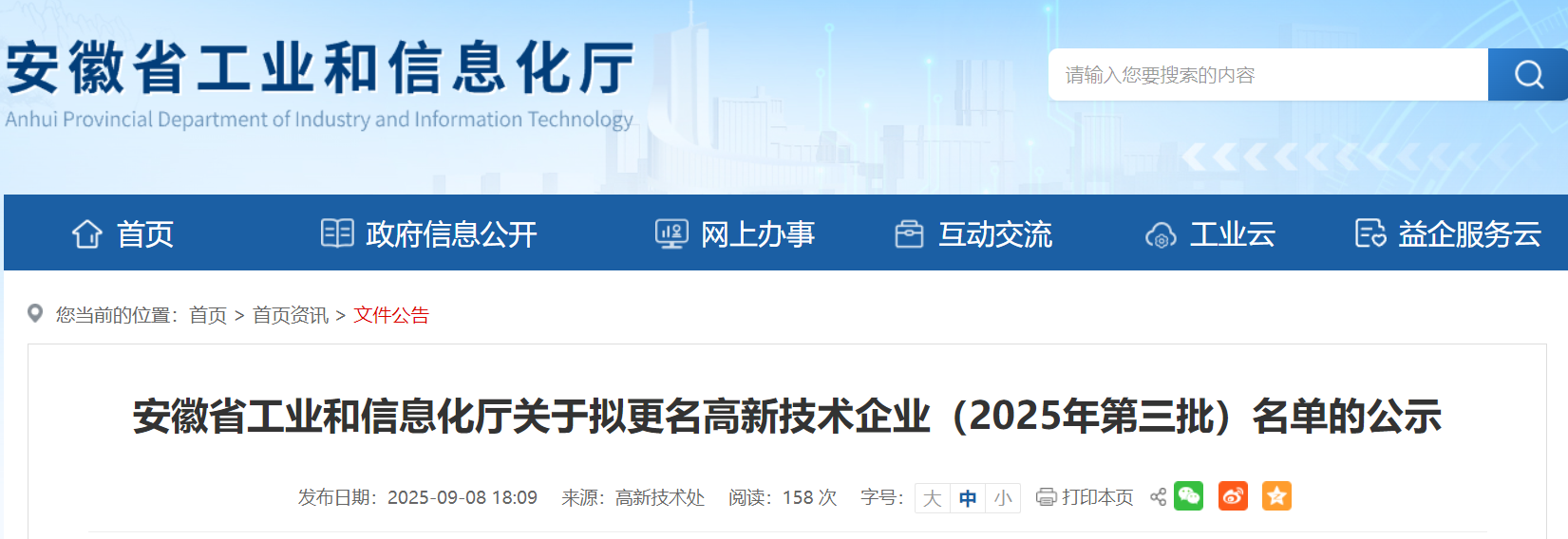 附件:安徽省2025年第三批拟更名高新技术企业名单