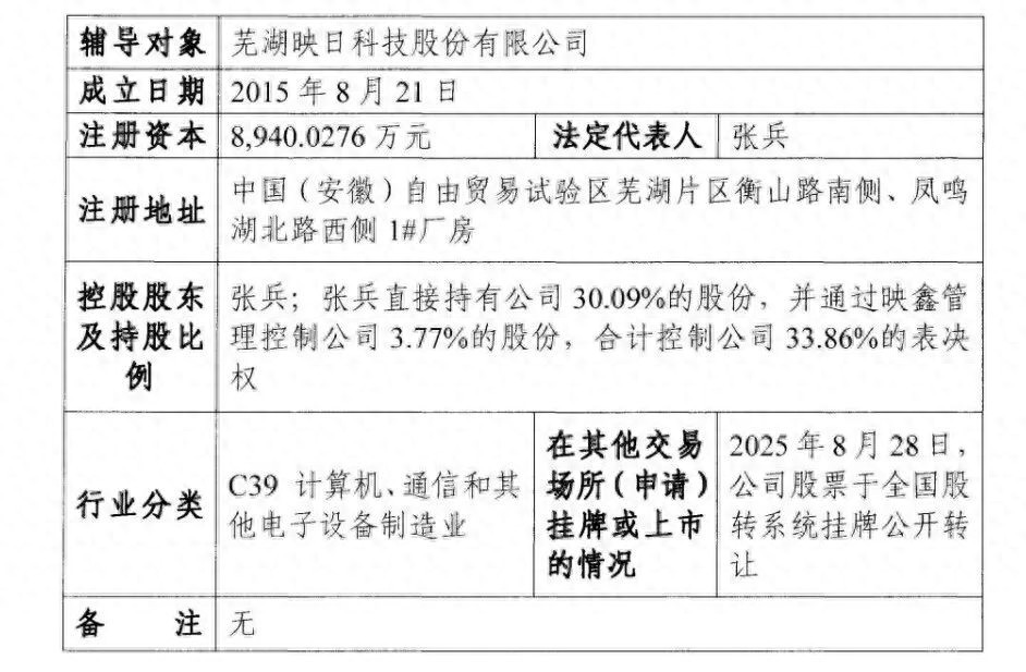 据证监会官网信息,近日,芜湖映日科技股份有限公司(以下简称“映日科技”)在安徽证监局办理辅导备案登记,辅导机构为中信建投证券股份有限公司,计划冲刺北交所。