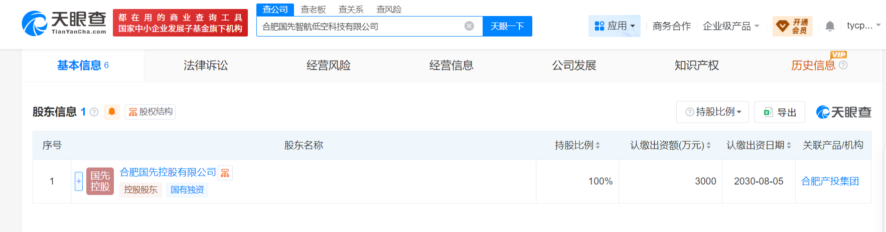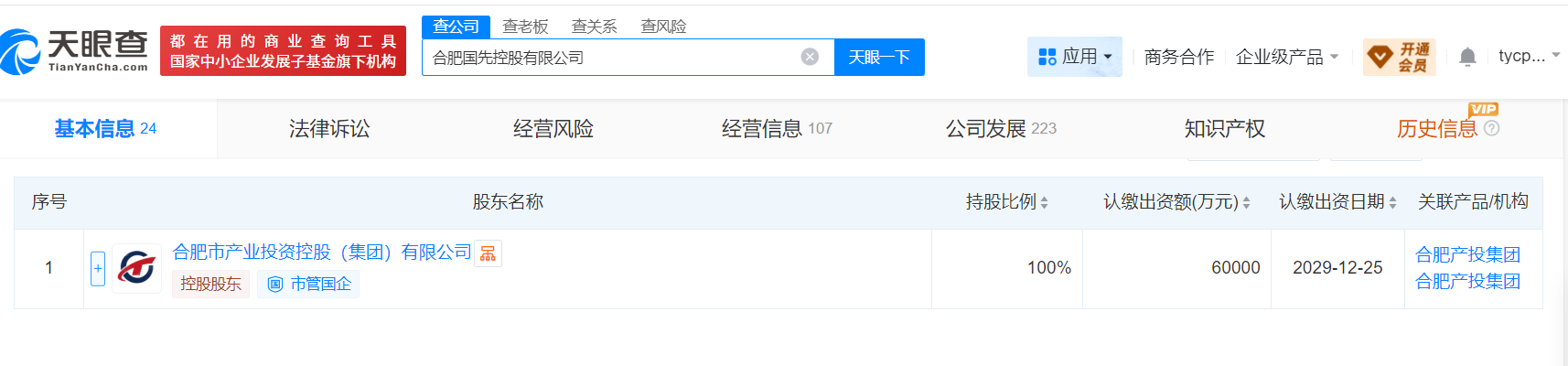 股权信息显示,该公司由合肥国先控股有限公司全资控股,后者系合肥市产业投资控股(集团)有限公司全资子公司。