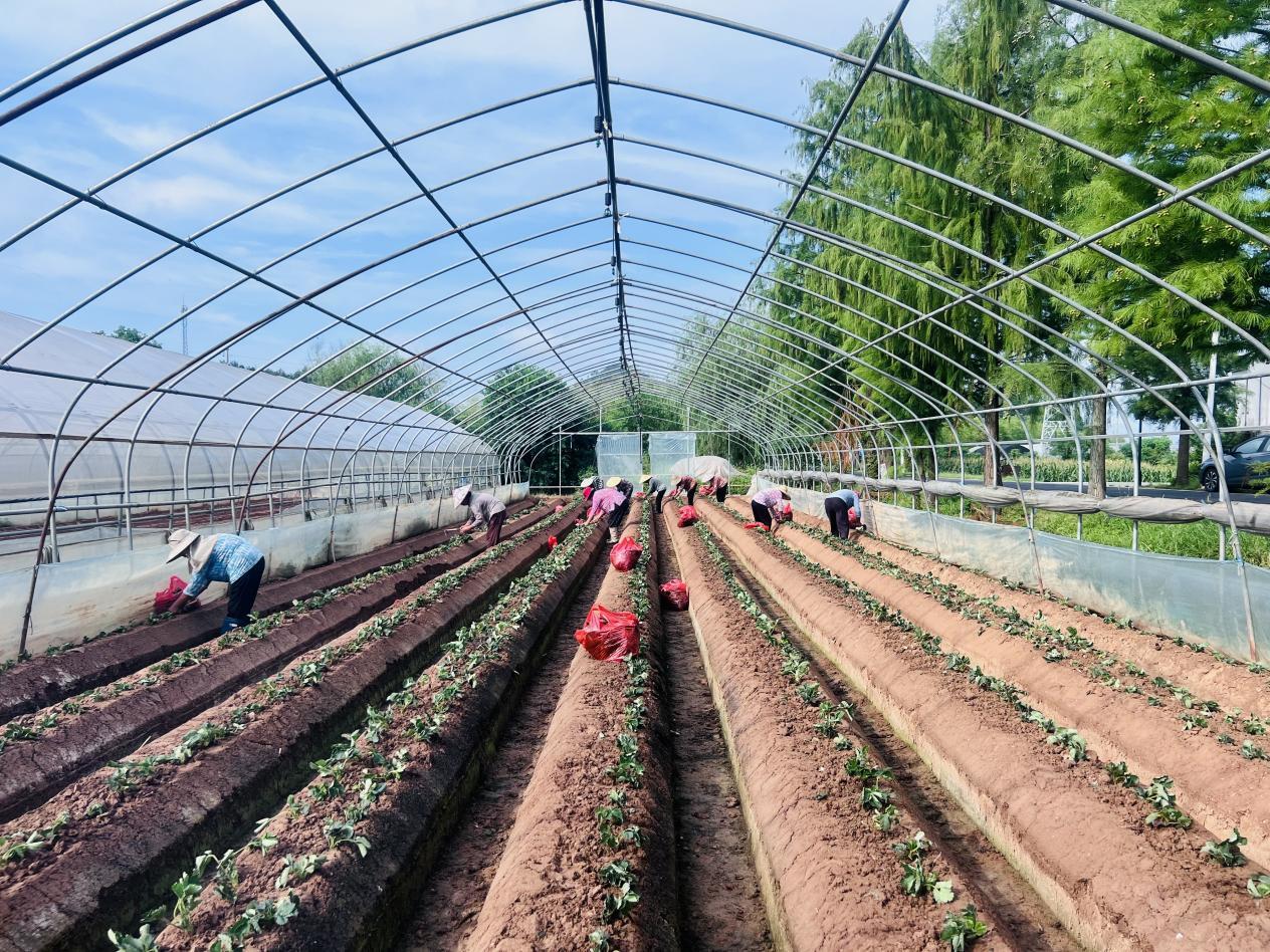 据了解,2025年草莓基地种植了近百亩草莓,为了不耽误农时,请了周边村民来帮忙种植,不仅能够及时完成草莓移栽,还能为周边村民提供就业机会,拓宽增收渠道。工人詹大婶就是最直接受益者。“以前大部分时间都是在家闲着,自从村里草莓种植基地建成后,我就开始在这里干活,一天90块工钱,离家又近,还能赚钱,挺好的”!