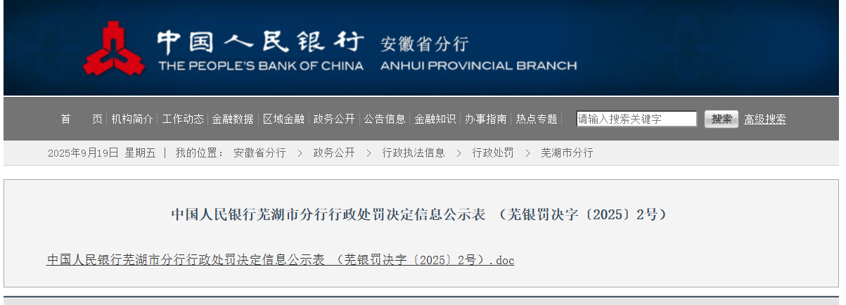 来源:中国人民银行安徽省分行网站