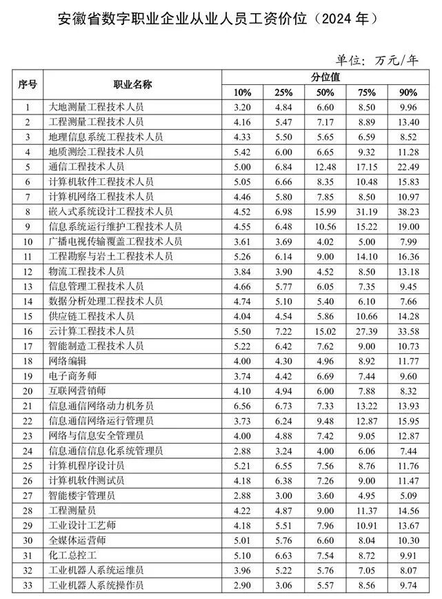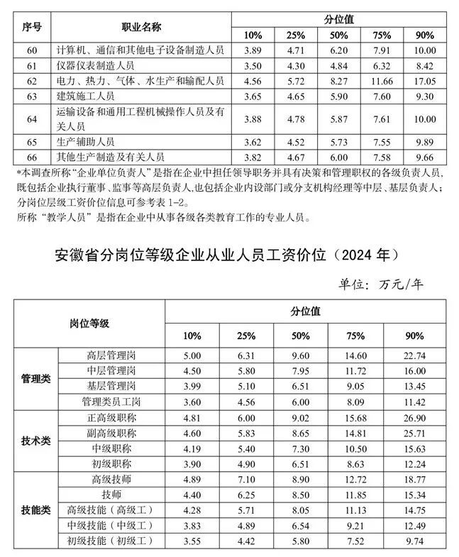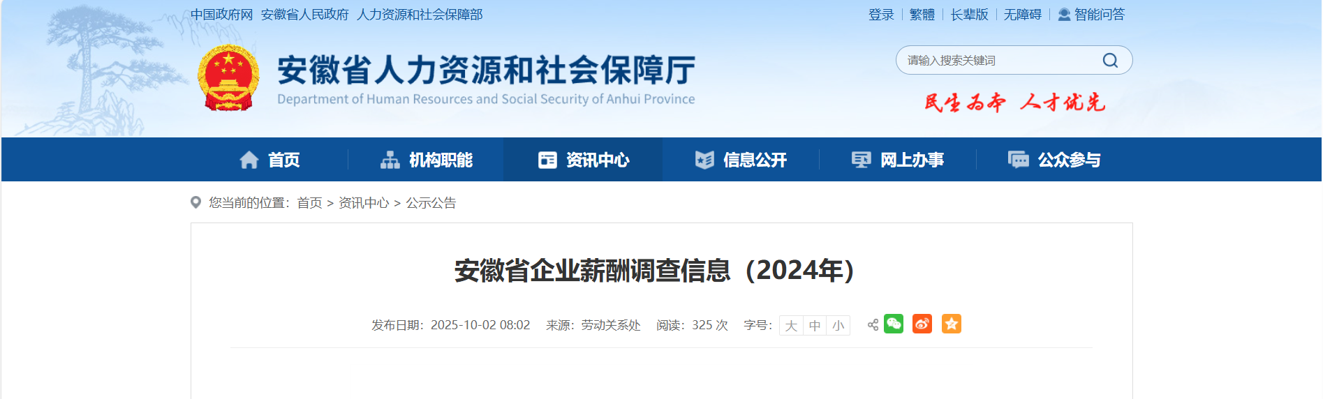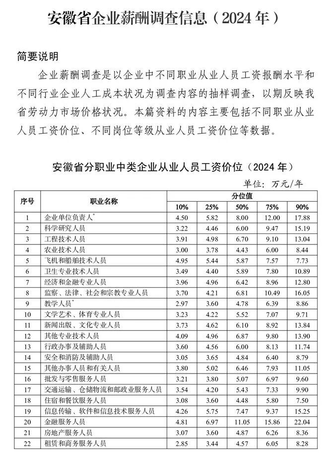 10月2日,安徽省人社厅网站发布《安徽省企业薪酬调查信息(2024年)》。
