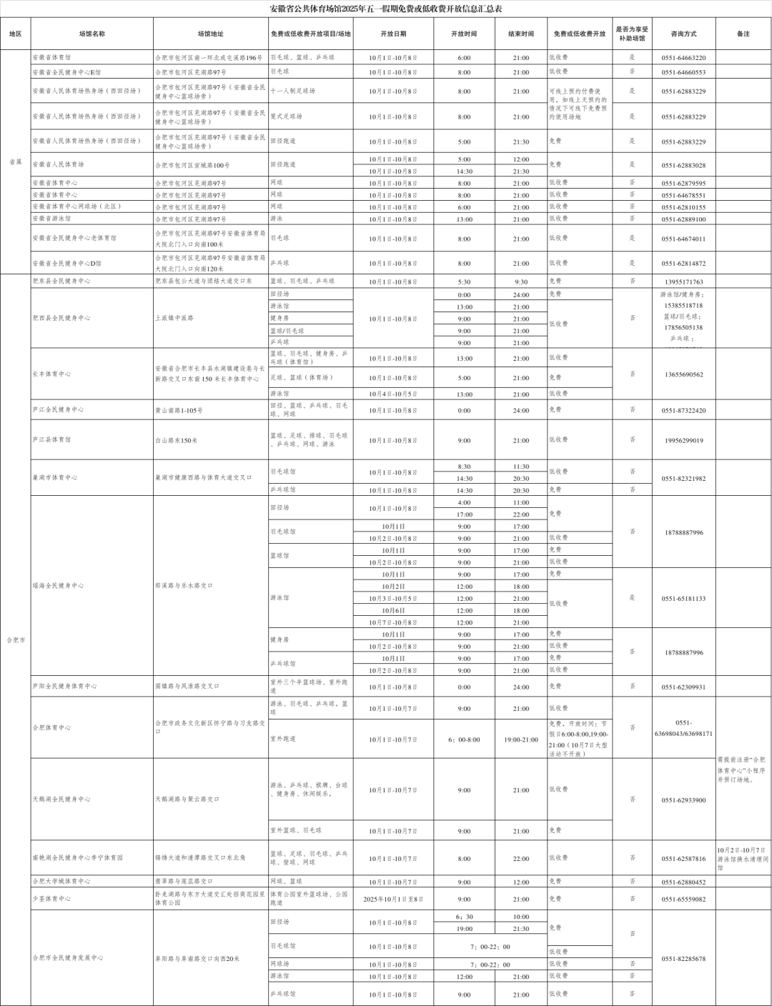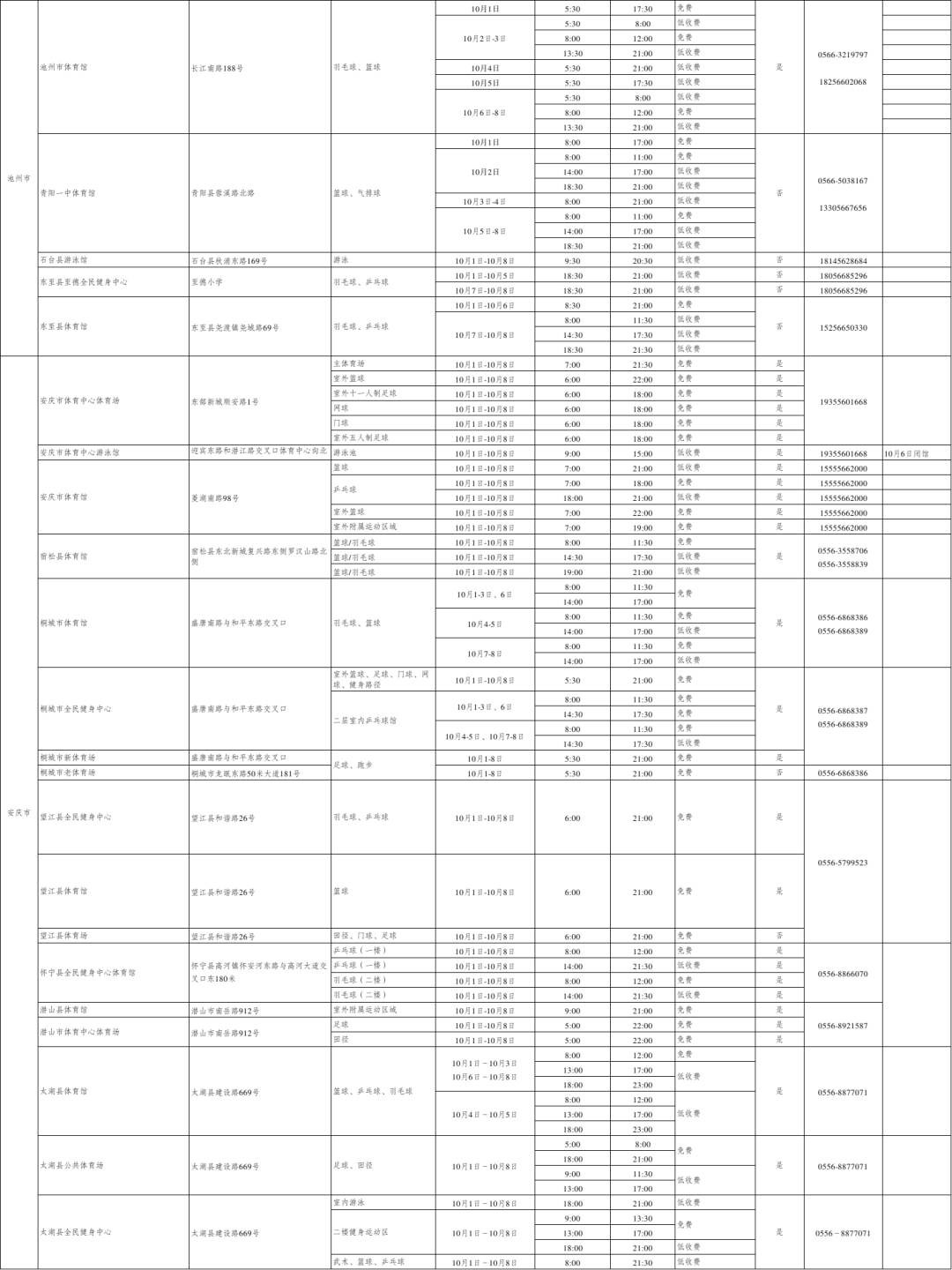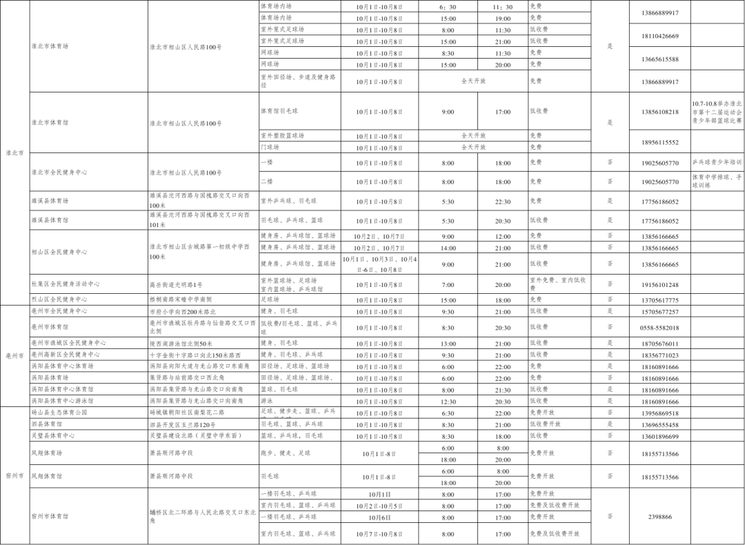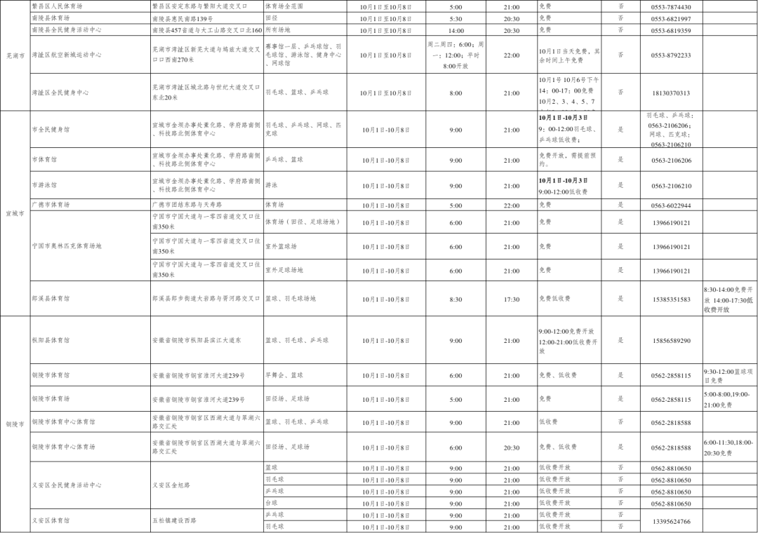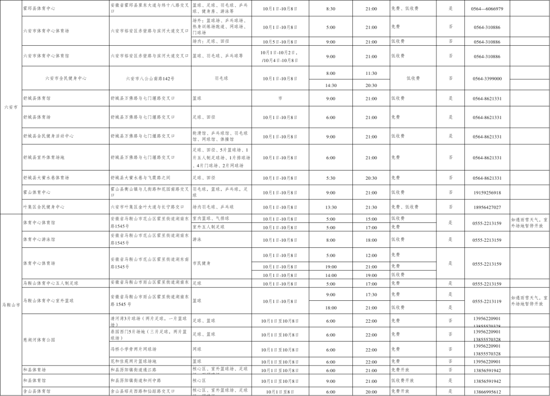 安徽省多地公共体育场馆