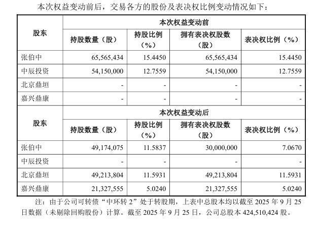 本次交易的核心内容包括两部分:一是以总对价约5.98亿元转让公司16.6171%的股权;二是原实控人张伯中承诺,在交易完成后将不可撤销地放弃其所持部分股份对应的表决权。