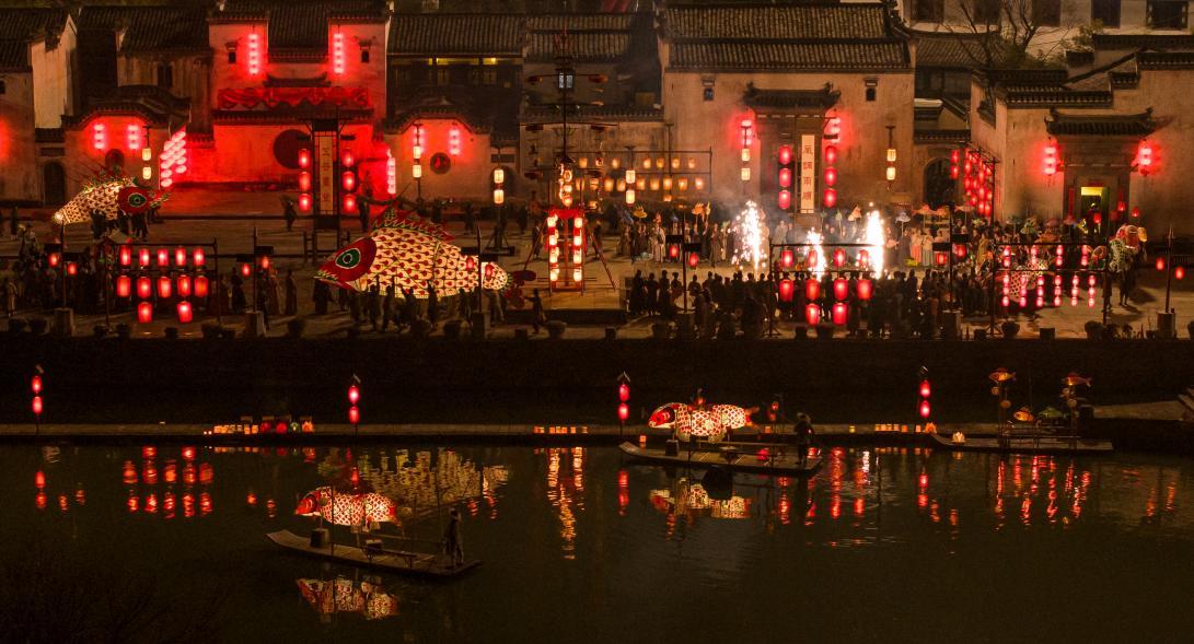 “东风夜放花千树,更吹落,星如雨。”当宋代词人辛弃疾笔下的元宵灯火盛景在徽州古村呈坎重现,这个国庆中秋假期,呈坎的鱼灯夜游活动成了无数游客心中的“诗与远方”。青砖黛瓦的古巷间,一盏盏灵动的鱼灯穿梭游走,与马头墙的剪影、永兴湖的波光交相辉映,在祈福的美好愿景中,书写着古村文化传承与乡村振兴的崭新篇章。