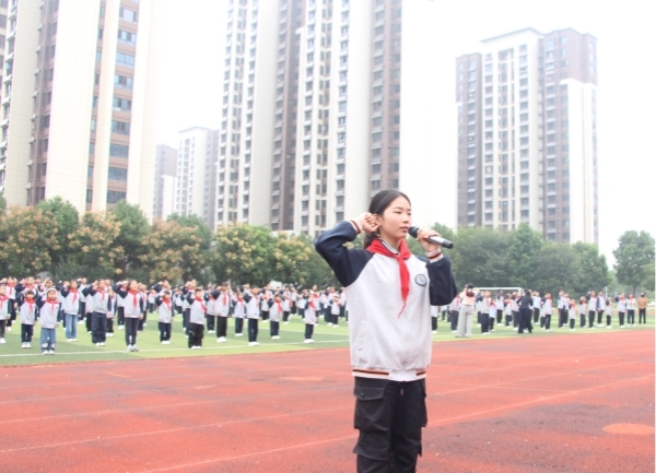 随后,全场齐唱《中国少年先锋队队歌》,稚嫩却坚定的歌声响彻校园:“我们是共产主义接班人,继承革命先辈的光荣传统……”