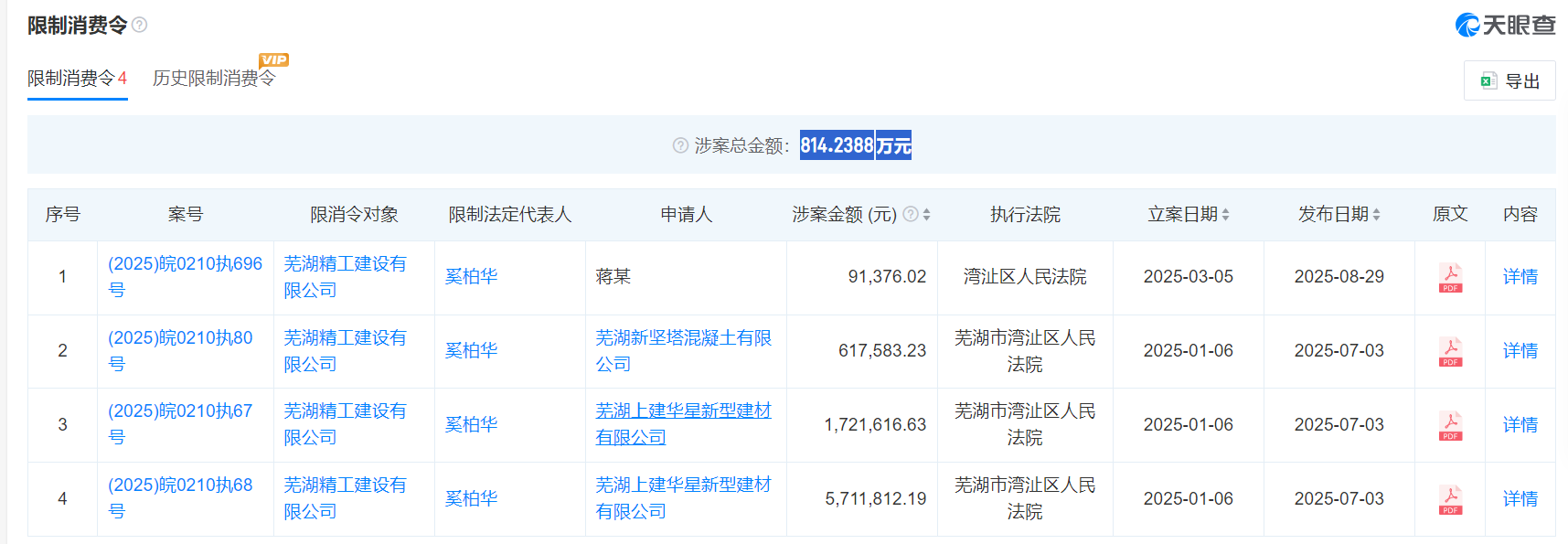 此外,该公司及法定代表人还存在多条限制消费令信息,涉案总金额814.2388万元。