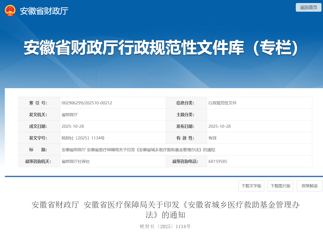 安徽省财政厅 安徽省医疗保障局