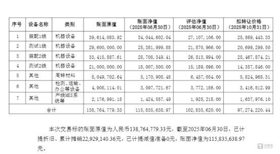 但上述设备的评估净值仅1.03亿元,相当于较账面净值打八九折。拟转让价格为9727万元,在评估净值基础上进一步折价约5.6%。