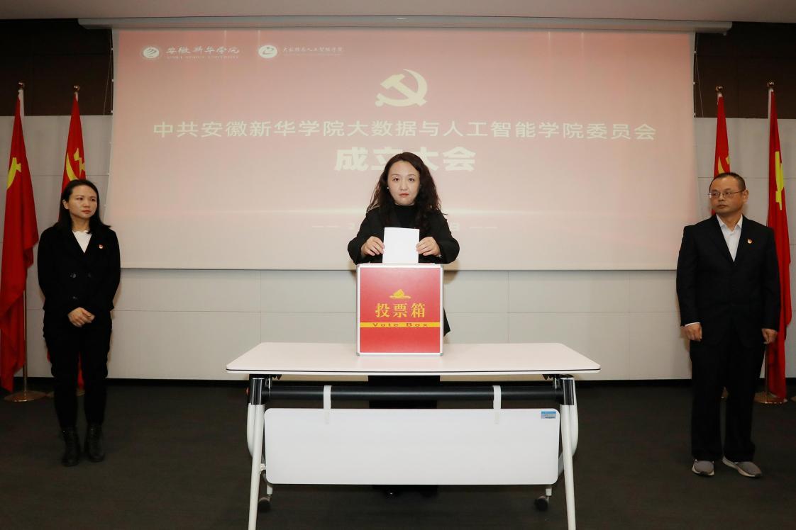 大会在庄严的国歌声中正式开始。万媛媛同志首先宣读了校党委《关于成立大数据与人工智能学院党委的通知》。随后,会议审议并通过了《中共安徽新华学院大数据与人工智能学院委员会第一次党员大会选举办法(草案)》、党委委员候选人预备人选名单以及监票人、计票人名单。依据《中国共产党章程》和《中国共产党基层组织选举工作条例》相关规定,大会以无记名投票和差额选举的方式,选举产生了学院第一届党委委员。经现场统计,郑妮、高扬、万家华等7位同志当选。