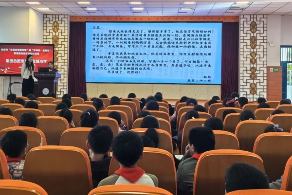 11月12日,合肥市“皖美合谐思政课”暨“举旗帜·送理论”百场思政课宣讲进百校活动,走进合肥市琥珀名城小学。由合肥市红星路小学钱志茹老师带来“品读抗战家书,争做时代新人”宣讲课。