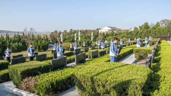 随后,缅怀仪式正式开始。低沉庄重的献花曲在陵园上空回荡,学生代表手持承载着全体师生哀思与敬意的鲜花,迈着沉稳的步伐走向烈士墓,郑重地将鲜花敬献于墓前。全体师生肃立,向长眠于此的革命先烈行注目礼,现场氛围凝重而肃穆,每一个驻足的身影、每一束崇敬的目光,都传递着对先烈的深切追思与崇高敬意。