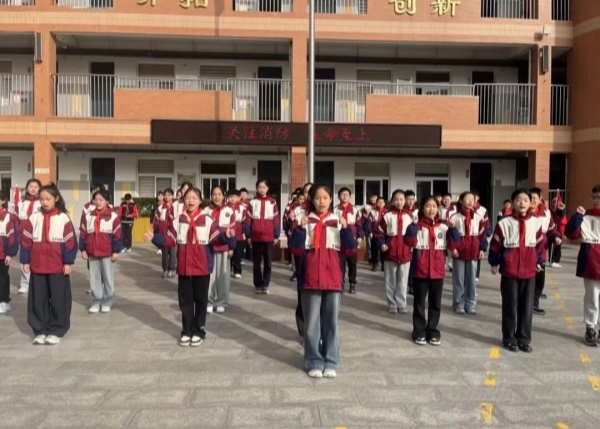 当日上午,阳光洒满校园,杏林小学全体师生齐聚操场参加升旗仪式。伴随着庄严的国歌,五星红旗冉冉升起,师生们肃立致敬。升旗仪式上,六(1)班的同学们身着整齐服装,为大家带来了精心编排的消防安全主题手势舞。他们动作规范整齐、神情专注认真,用灵动的肢体语言诠释着消防安全的重要意义,将“安全第一、预防为主”的理念通过直观生动的形式传递给在场每一个人,赢得了师生们的阵阵掌声。手势舞表演既丰富了活动形式,又让消防安全知识在潜移默化中深入人心。
