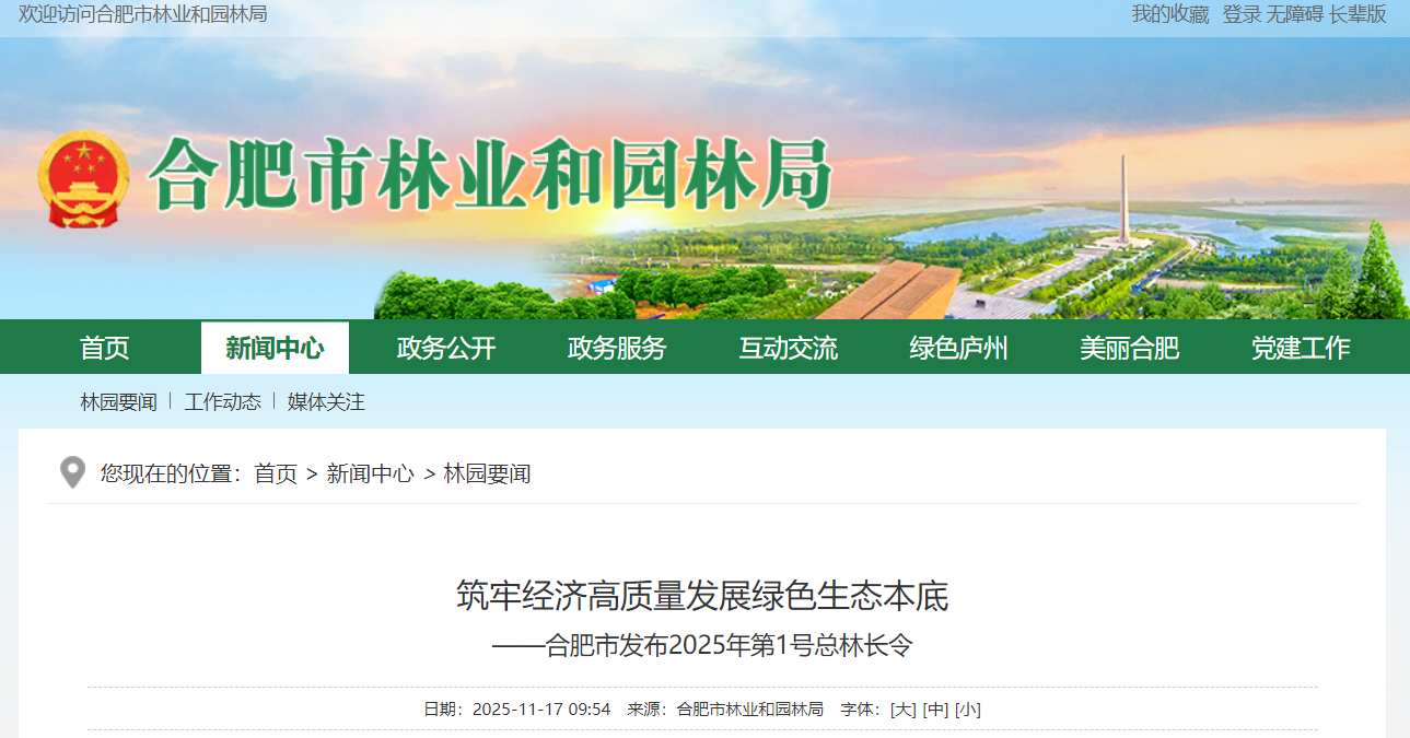 近日,合肥市发布2025年第1号总林长令,聚焦森林、林地、湿地等生态资源保护管理,明确七大重点任务,统筹推进绿美合肥建设,全面筑牢经济社会高质量发展绿色生态本底。