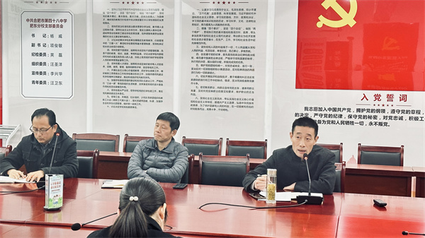 2025年11月18日下午,合肥市第四十八中学肥东分校召开"润泽教育底色,深入推进阅读"主题推进会,校党支部副书记项俊敏、副校长浦创奇、教科室主任尹徐峰及全体学科组长共同研讨阅读与教研融合新路径。