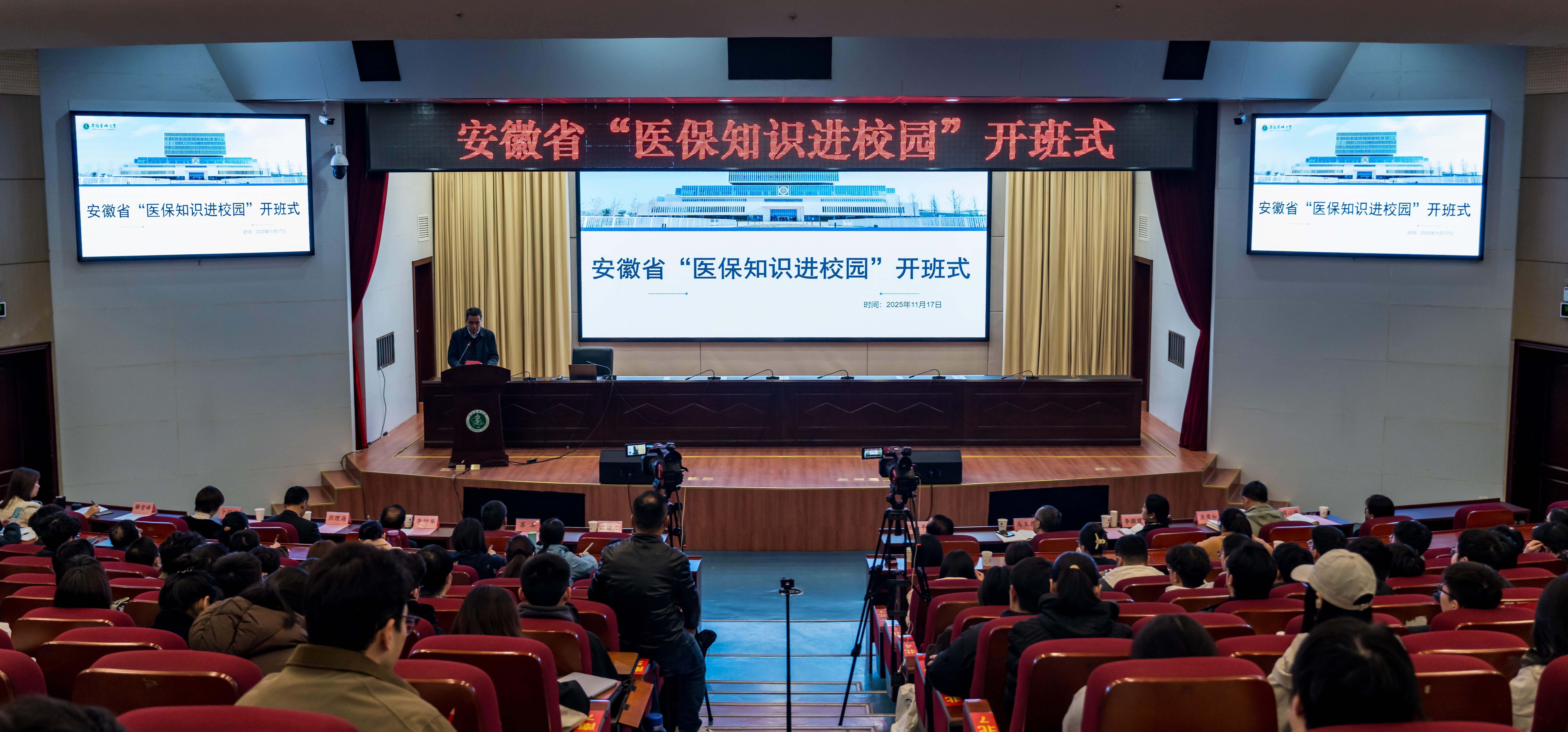 开班式现场,安徽省医保局副局长汪和平以授课教师的身份,为学生讲授了《医疗保障学》的第一课。他就医疗保险的基本理论、改革进程和发展形势等进行了解读,帮助学生建立起对医保体系的整体认知,也拉开了安徽省“医保知识进课堂”教学实践的序幕。