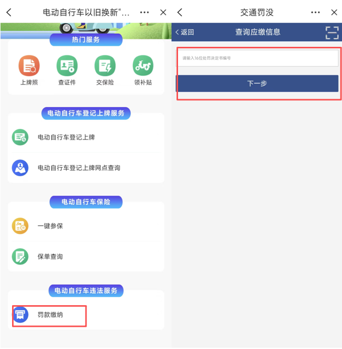 在服务页面点击“罚款缴纳”进入,按页面提示操作即可。