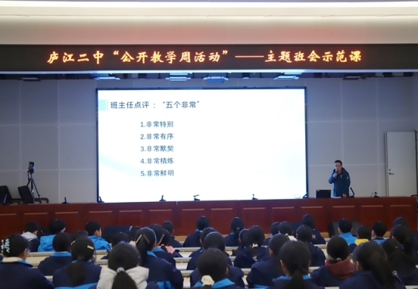 11月24日,庐江二中2025-2026学年度第一学期“公开教学周”系列活动正式拉开帷幕。 本次活动,以学校“青蓝工程”为基础,结合庐江县教体局教学视导工作,分三个阶段进行:24-25日主题班会示范课,25日优秀教师示范教学,26日-28日青年教师汇报课,共有37名教师进行了课堂教学展示。