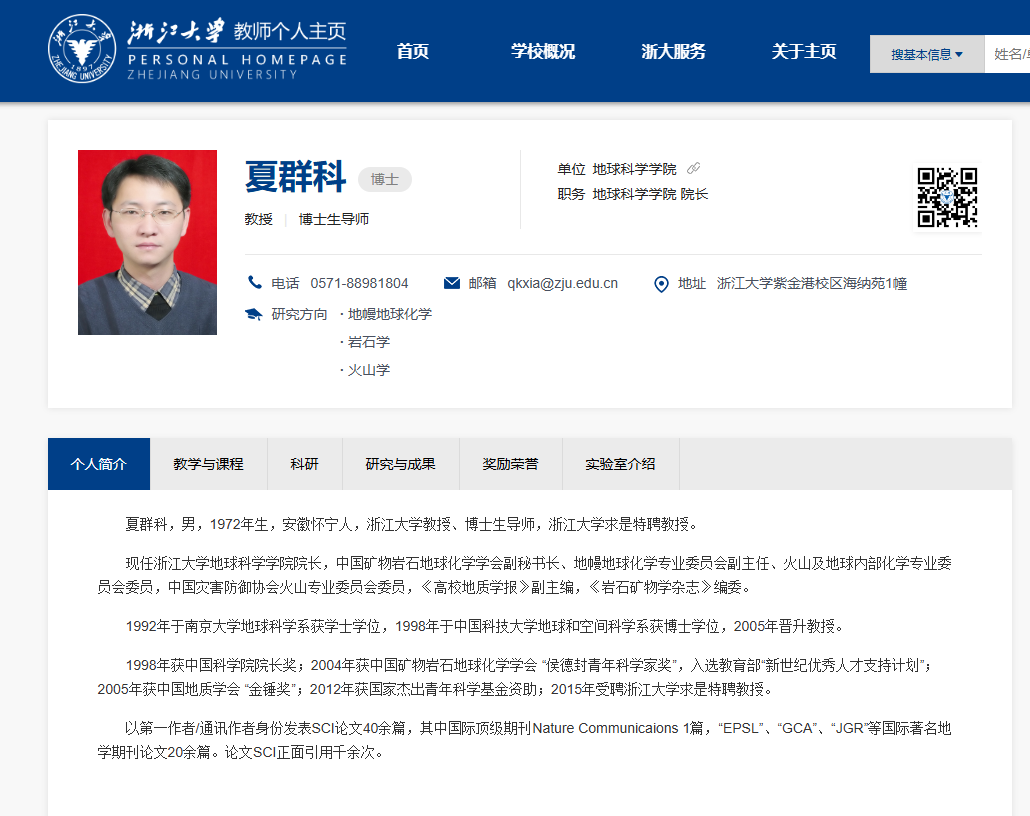 夏群科,男,1972年生,安徽怀宁人,浙江大学教授、博士生导师,浙江大学求是特聘教授。1992年于南京大学地球科学系获学士学位,1998年于中国科技大学地球和空间科学系获博士学位,2005年晋升教授。 现任浙江大学地球科学学院院长,中国矿物岩石地球化学学会副秘书长、地幔地球化学专业委员会副主任、火山及地球内部化学专业委员会委员,中国灾害防御协会火山专业委员会委员,《高校地质学报》副主编,《岩石矿物学杂志》编委。