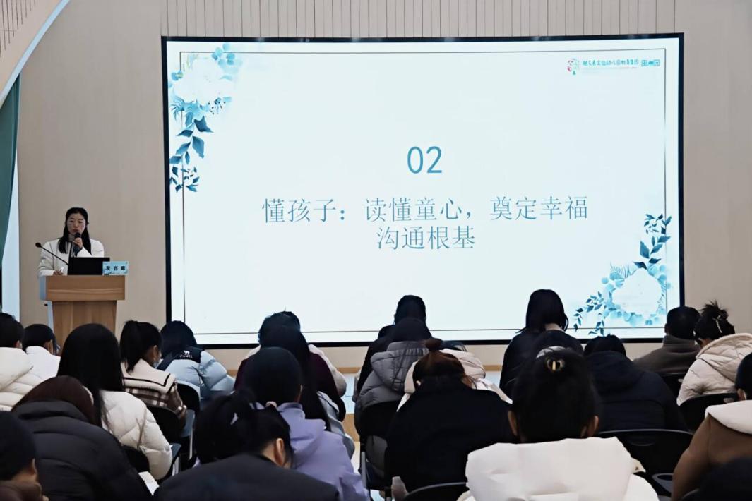“读懂孩子”环节,施媛媛结合幼儿自主意识萌芽的心理特点,拆解“执着穿衣”“被批评后躲藏”等行为背后的需求,分享“先共情肯定、再讲后果、给选择”的三步沟通法,引导家长以尊重替代命令、以倾听贴近童心。家园沟通方面,明确“找共鸣、会倾听、善共情、重行动”四大策略与“不越界、聚合力”原则,规避情绪化指责等误区,倡导“事实+感受+请求”的正向表达。