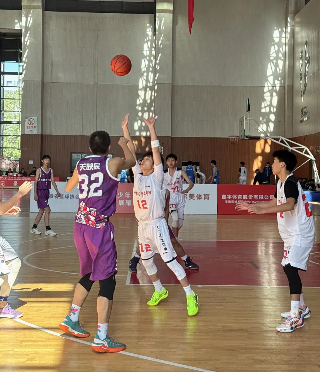 历经多轮鏖战,2025年安徽省青少年篮球冠军赛圆满落幕。合肥市第四十五中学长丰路校区男篮在领队汪成兵,教练员李泽国、朱再军,助理教练周浩宇的带领下,由周浩天、董骐玮、李东洋、陈晟林、苏柏岩、黄子杭、吴尚恒、阮辰逸、王雨墨、魏煜书、关钧逸、樊峻源12名队员组成的队伍,于强敌环伺的赛场中逆势突围,一举斩获2025年安徽省青少年篮球冠军赛第三名与体育道德风尚奖代表队两项殊荣。队员周浩天获评“得分王”,用坚韧与热血续写了四十五中学长丰路校区的篮球传奇。