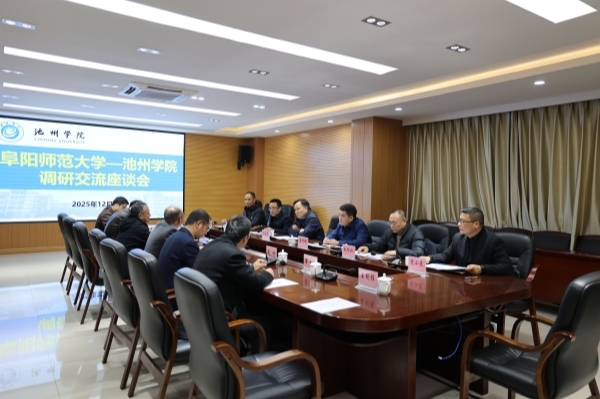 12月2日,阜阳师范大学党委副书记、校长方廷勇,党委常委、副校长窦贤琨一行来池州学院调研交流。校党委副书记、院长王先柱出席座谈会并讲话,党委委员、副院长阳光宁出席座谈会。