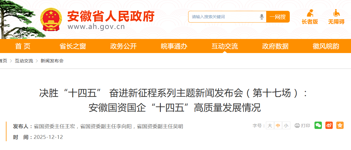近日,安徽省人民政府召开决胜“十四五” 奋进新征程系列主题新闻发布会(第十七场):安徽国资国企“十四五”高质量发展情况。安徽省国资委主任王宏介绍有关情况。