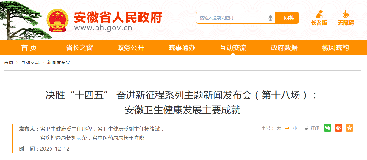 近日,安徽省人民政府召开决胜“十四五” 奋进新征程系列主题新闻发布会(第十八场):安徽卫生健康发展主要成就。安徽省卫生健康委主任邢程介绍有关情况。