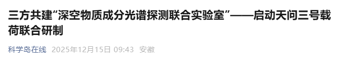 12月14日,中国科学院合肥物质科学研究院(以下简称“合肥物质院”)、澳门科技大学与香港中文大学在合肥科学岛共同签署协议,三方合作共建“深空物质成分光谱探测联合实验室”并同步启动天问三号载荷“激光外差光谱仪”的联合研制任务。合肥物质院副院长阚瑞峰、香港中文大学副校长岑美霞、澳门科技大学副校长谭广亨代表三方签署联合实验室合作协议。