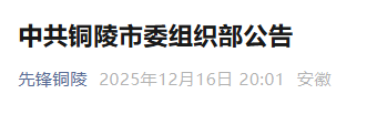 12月16日,中共铜陵市委组织部发布干部任前公示公告。