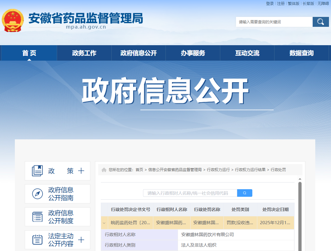 近日,据“安徽药监局”公开披露行政处罚信息,因生产销售含有重金属及有害元素的栀子,安徽盛林国药饮片有限公司被罚没收151078.9元。行政处罚决定书文号是皖药监药处罚〔2025〕2-58号。
