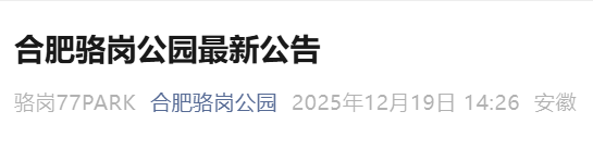 另据“合肥骆岗公园”公众号消息,2025年12月31日晚间,合肥骆岗公园不开展跨年相关活动。骆岗公园倡导人员不聚集,请广大市民与游客朋友理性安排出行。