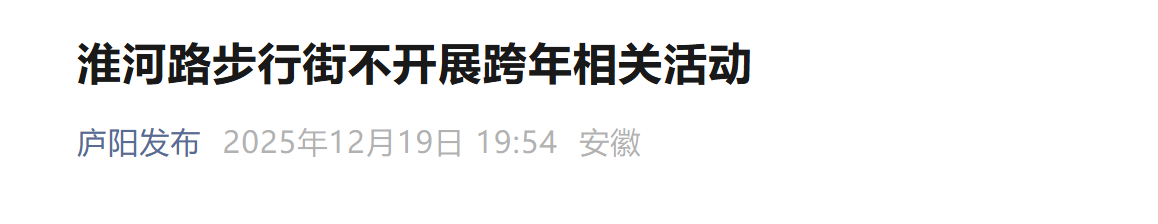 淮河路步行街不开展跨年相关活动