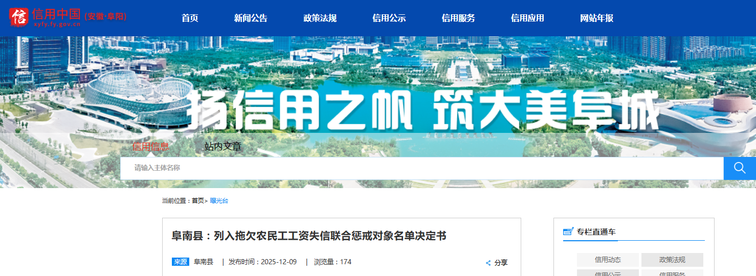 来源:信用阜阳、天眼查