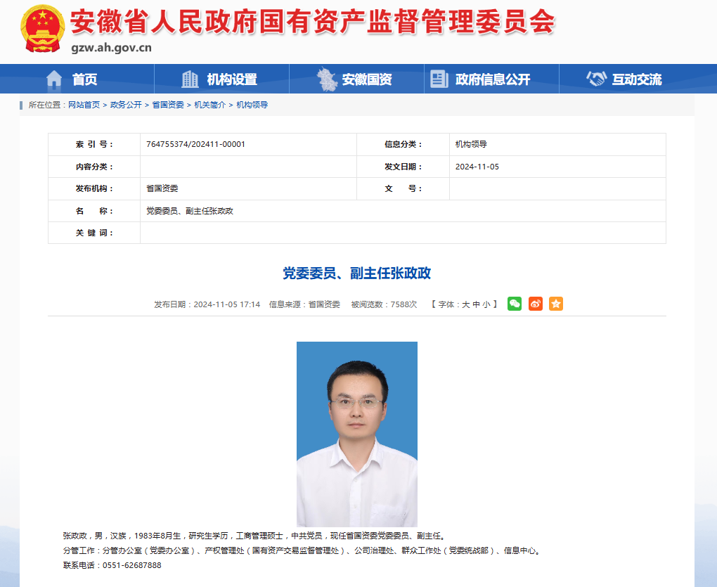 他曾任安徽省国资委办公室主任,2024年11月前后出任省国资委副主任。