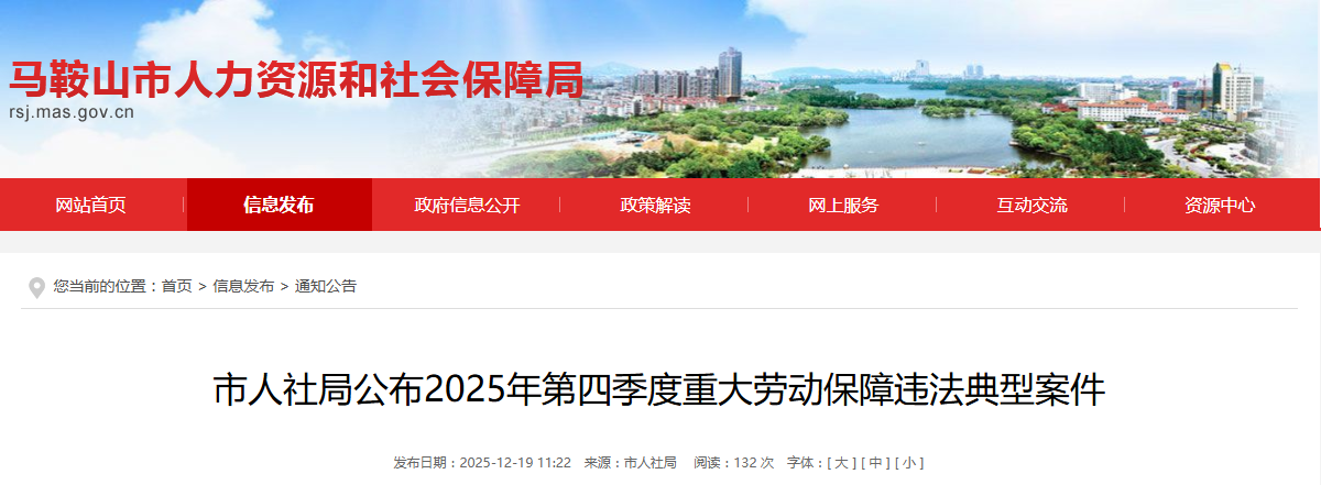 为加大对重大劳动保障违法行为的惩戒力度,进一步警示和震慑有侵害劳动者合法权益倾向的用人单位,切实维护劳动者合法权益,依据《重大劳动保障违法行为社会公布办法》(人力资源社会保障部令第29号),现将我市2025年第四季度1起重大劳动保障违法典型案件予以公布。