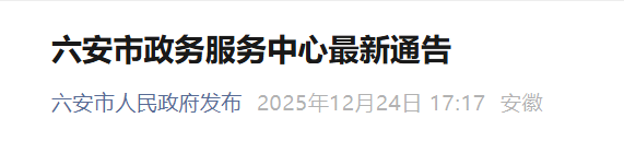 关于六安市政务服务中心2026年元旦假期提供预约服务的通告