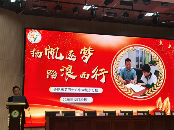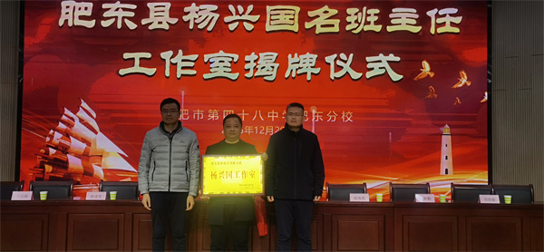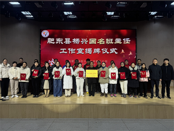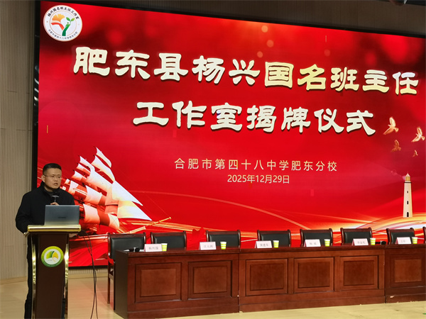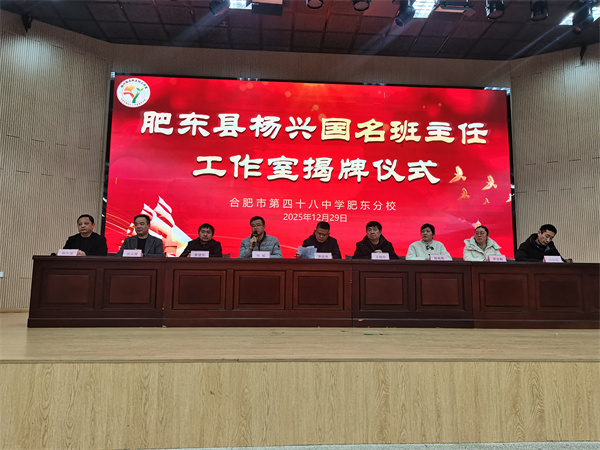 为深化立德树人根本任务,加强新时代班主任队伍建设,2025年12月29日下午,肥东县"杨兴国名班主任工作室"揭牌仪式在合肥市第四十八中学肥东分校报告厅举行。肥东县教体局副局长李金光,德育室主任王朝升,合肥市第四十八中学肥东分校党支部书记、校长杨威,党支部副书记项俊敏,副校长汪元渊及全县多所学校的德育负责人和骨干班主任代表共同见证了这一时刻。