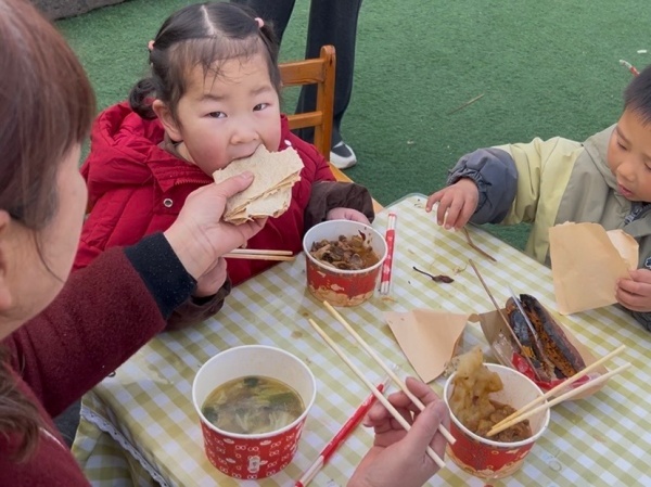 庙会现场暖意融融、热闹非凡,孩子们手持代金币穿梭在各个美食摊位前,脸上洋溢着幸福的笑容。老师们化身暖心摊主,细心为孩子们分装美食、耐心引导秩序,家长志愿者们也全力助阵,共同为孩子们搭建起欢乐的美食乐园。此次元旦庙会活动,既让孩子们在品尝本土特色美食中感受家乡味道,又在互动游戏中增进同伴情谊,为孩子们的童年时光增添了温馨又难忘的元旦记忆。