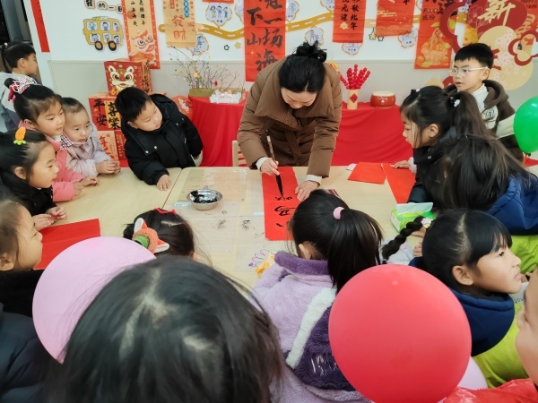 围绕新年主题,集团园开展了形式多样的传统文化教育活动。通过绘本共读、民俗讲解、手工实践等形式,孩子们了解了元旦的由来、新年的传统习俗;在“写福字、送祝福”活动中,孩子们用稚嫩的笔触描绘吉祥,学会表达感恩与关爱;在生肖文化课堂上,趣味十足的互动游戏让传统文化变得鲜活可感。一系列主题活动将文化传承融入幼儿一日生活,让孩子们在体验中感受中华传统文化的魅力,厚植文化自信。