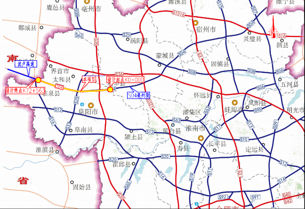 路线全长约72.56km,估算总投资约110亿元,采用双向四车道高速公路标准,设计速度120公里/小时。该高速公路路基宽度27米,设特大桥6座、大桥17座、中桥55座,设大刘寨(枢纽)、伍明、行流(枢纽)、闻集、泉阳、王集6处互通立交,设匝道收费站4处,服务区1处。