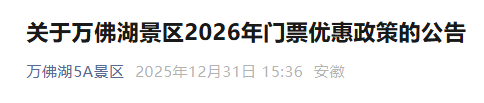 为感谢大家长期以来对万佛湖景区的关爱与支持,经公司会议研究决定,以最大的优惠让利于广大游客,现将具体优惠政策公告如下: