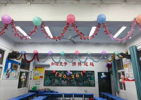 经过精心布置,原本整洁的校园焕然一新。教室窗明几净、主题鲜明,走廊温馨雅致、充满童趣,校园处处张灯结彩、喜气洋洋,每一处细节都传递着对新年的期盼,也为12月31日的元旦联欢会搭建了充满氛围感的舞台。