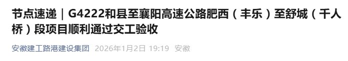 12月31日,建工路港公司G4222和县至襄阳高速公路肥西(丰乐)至舒城(千人桥)段项目交工验收会议顺利召开。