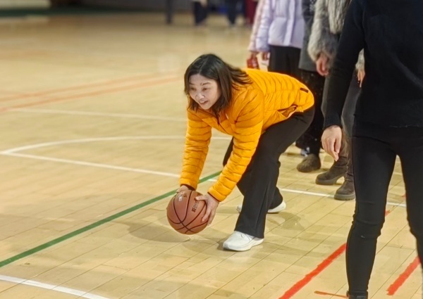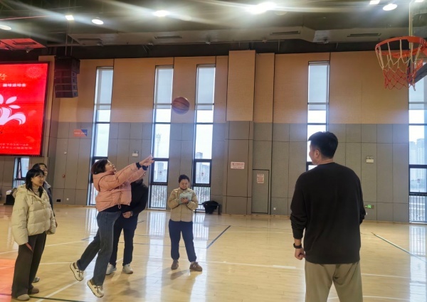 个人项目包括投壶、定点投篮、套圈和保龄球。投壶区域,教师们站在指定投掷线后,手持乒乓球,眼神专注,精准发力,力求让乒乓球通过地面反弹精准落入垃圾桶内 ,每当成功投中,现场便响起一阵欢呼声;定点投篮处,老师们身姿矫健,站在罚球线后,高高跃起,篮球在空中划过一道美丽的弧线,空心入网的瞬间,赢得周围同事的阵阵掌声;套圈场地,教师们全神贯注地盯着摆好的垒球,轻轻抛出手中的套圈,期待着能套中目标,套中时的那份喜悦溢于言表;保龄球区域,教师们助跑、掷球,动作一气呵成,看着矿泉水瓶被篮球击倒,现场气氛热烈非凡。