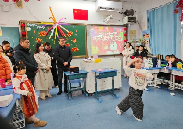 活动期间,该校校长、党支部书记胡旭东,副书记俞超,副校长黄克凤走进各班教室,与师生们亲切交流,共同感受欢乐的节日氛围,并向全体师生送上真挚的新年祝福。校领导对各班联欢会的精心筹备和精彩呈现给予充分肯定,鼓励同学们在新的一年里珍惜时光、勤奋学习、全面发展,努力成为有理想、有本领、有担当的新时代少年;同时向辛勤耕耘的全体教职工致以诚挚的问候,感谢大家一年来的辛勤付出,希望大家在新的一年里继续凝心聚力、砥砺前行,共同推动学校教育教学工作再上新台阶。温暖的祝福、亲切的关怀,让每一位师生都感受到了校园大家庭的温暖。