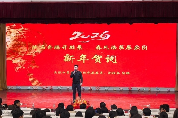 岁序常易,新元肇启。在一片欢声笑语中,安徽中药科技学校2026年元旦联欢晚会圆满落下帷幕。这不仅是一场辞旧迎新的欢乐盛会,更是一次凝聚人心、鼓舞士气的奋进誓师。展望2026年,全校师生将以此次晚会为契机,把满腔热忱与昂扬斗志转化为前行的动力,同心同德、锐意进取、笃行实干,为推动学校高质量发展、助力“升专”目标实现添砖加瓦,共同书写学校更加灿烂辉煌的新篇章!(图文/孟卢布罡)