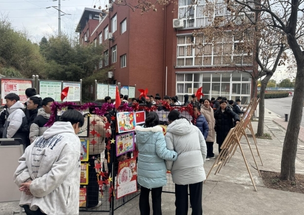 旧岁已展千重锦,新元再启万象新。近日,铜陵市第二十一中学的校园里涌动着一抹动人的红——“红色美育”系列活动之元旦美术展如期绽放。教学楼前,一幅幅凝聚红色基因与新年气象的师生作品,将家国情怀、青春愿景与校园温暖融入纸张与色彩之中,为冬日校园增添了一道绚丽而庄重的节日风景,也为2026年的到来展开了朝气蓬勃的篇章。